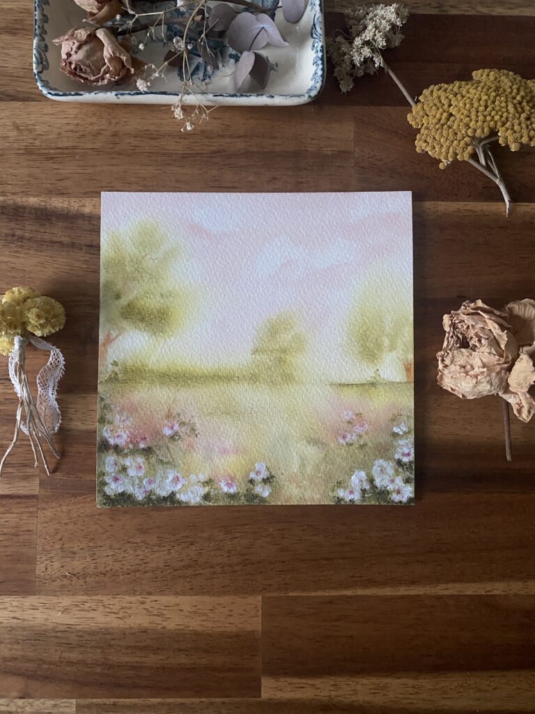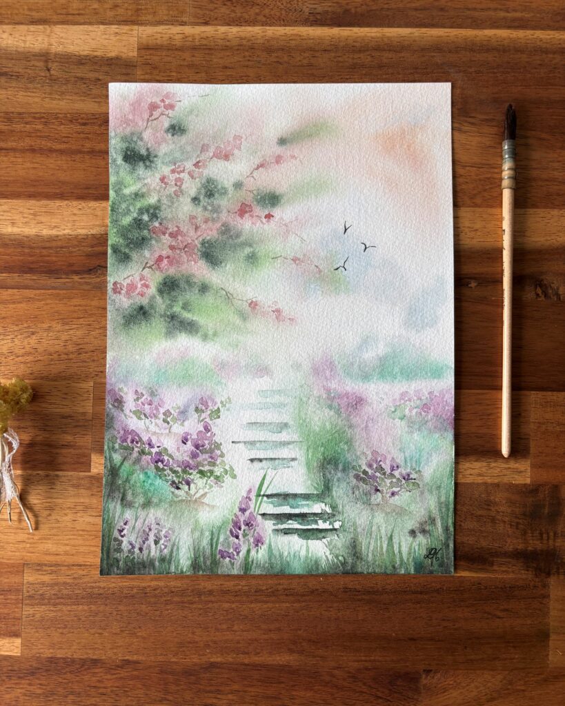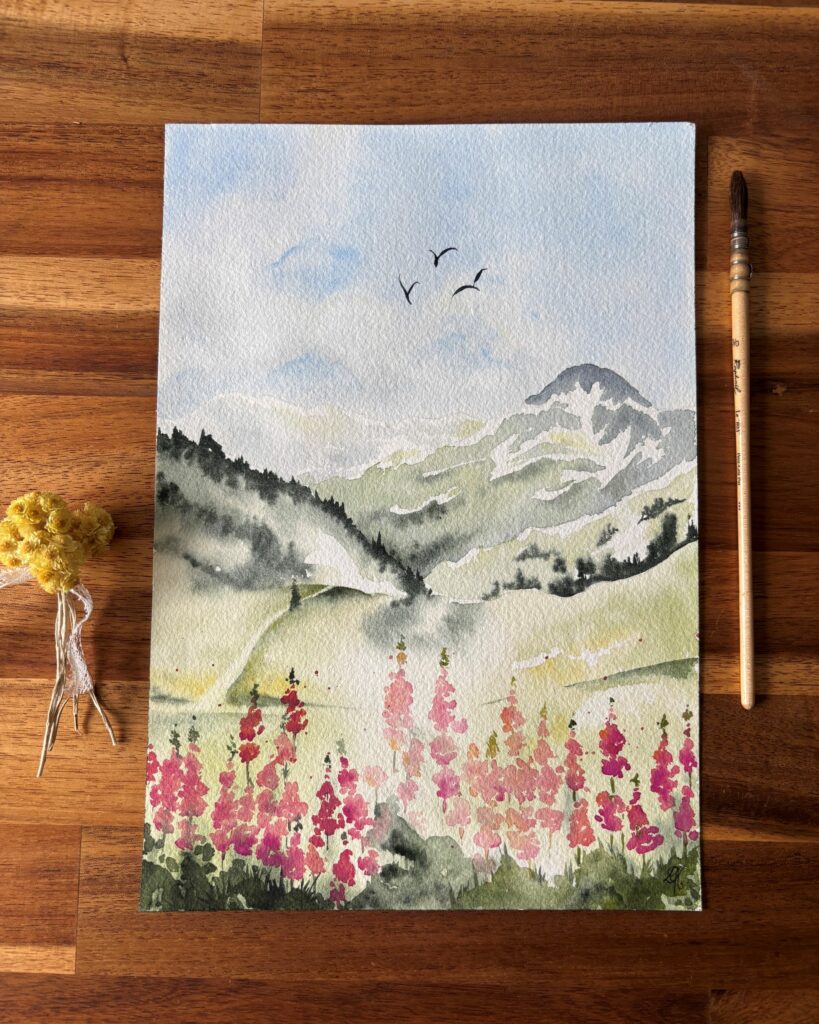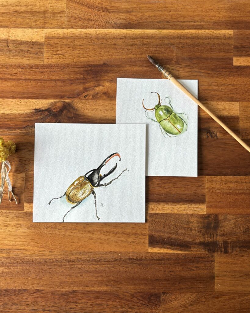 Lorsque je me mets à peindre, je pense à la nature qui m’entoure. Elle m’anime et m’inspire. Parfois, je me dis que je veux ou peux tout peindre, en réalité, je reviens toujours aux fondamentaux, à ce qui me touche vraiment : l’insecte qui sort de terre, l’oiseau qui se pose sur une branche, un papillon coloré.